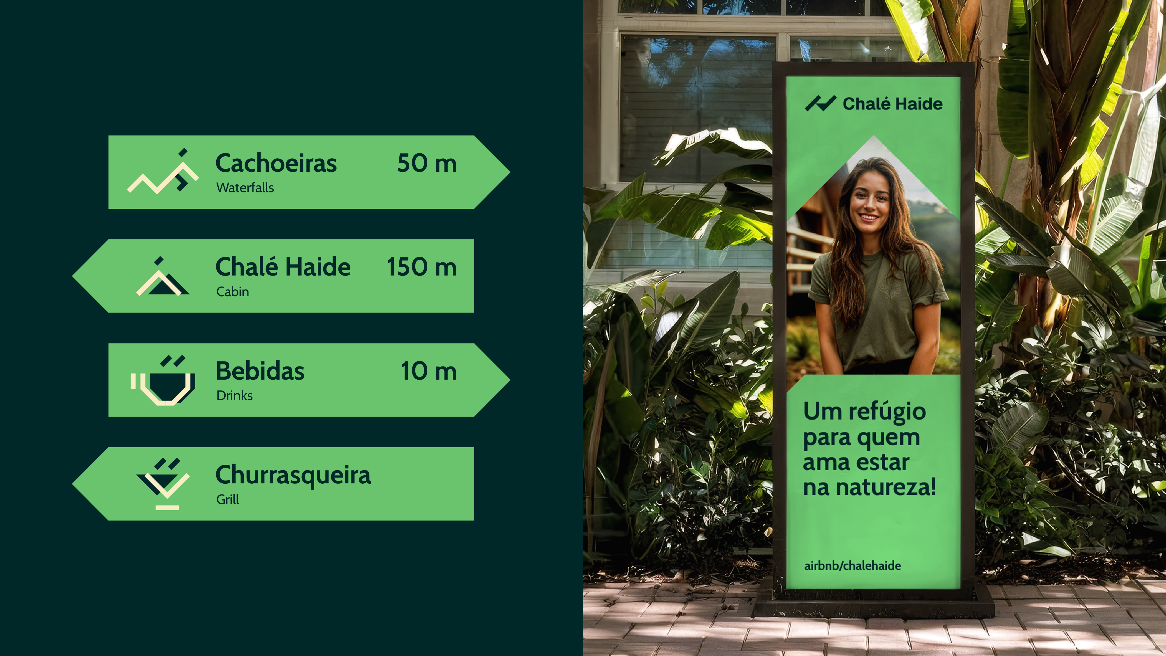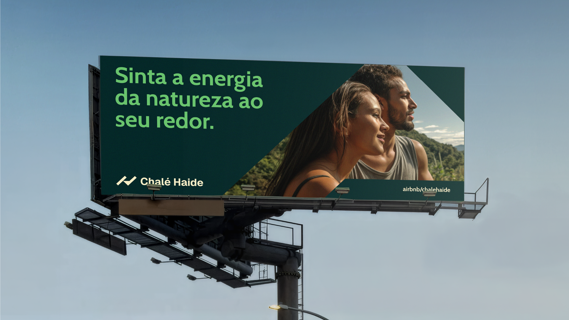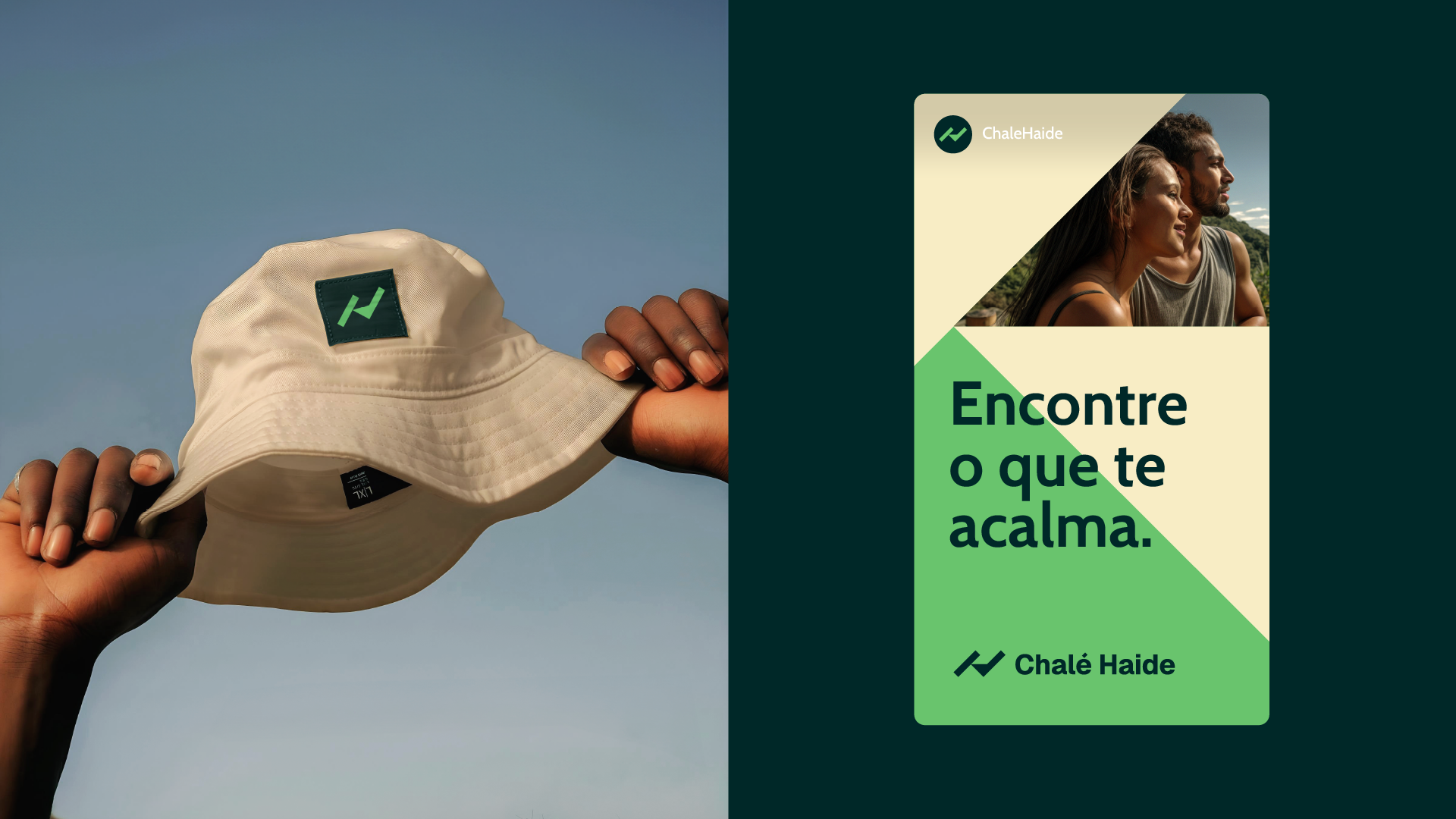 Visualmente, buscamos uma construção que refletisse essa essência — formas inspiradas na própria arquitetura do chalé, cores que evocam a natureza e um tom de voz que convida as pessoas a desacelerar.